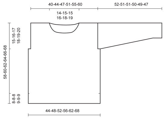 Свободно набрать 20-20-22-22-24-24 петли на круговые спицы 9 мм одной нитью каждого цвета и вязать платочной вязкой прямыми и обратными рядами. На высоте 6 см прибавить по 1 петле с каждой стороны Совет по прибавкам см. выше! Повторять прибавки каждые 11.-8½.-8½.-7.-6½.-5½ см 4-5-5-6-6-7 раз (= 5-6-6-7-7-8 всего) = 30-32-34-36-38-40 петель. Вставить 1 маркер с каждой стороны на высоте 50-49-49-47-45-43 для шва. На высоте 52-51-51-50-49-47 см (длина рукава короче в больших размерах, из-за широких плеч) свободно закрыть все петли.